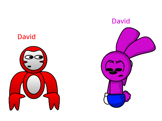 David (the purple one) is a reskin of riggy without legs and bunny tai